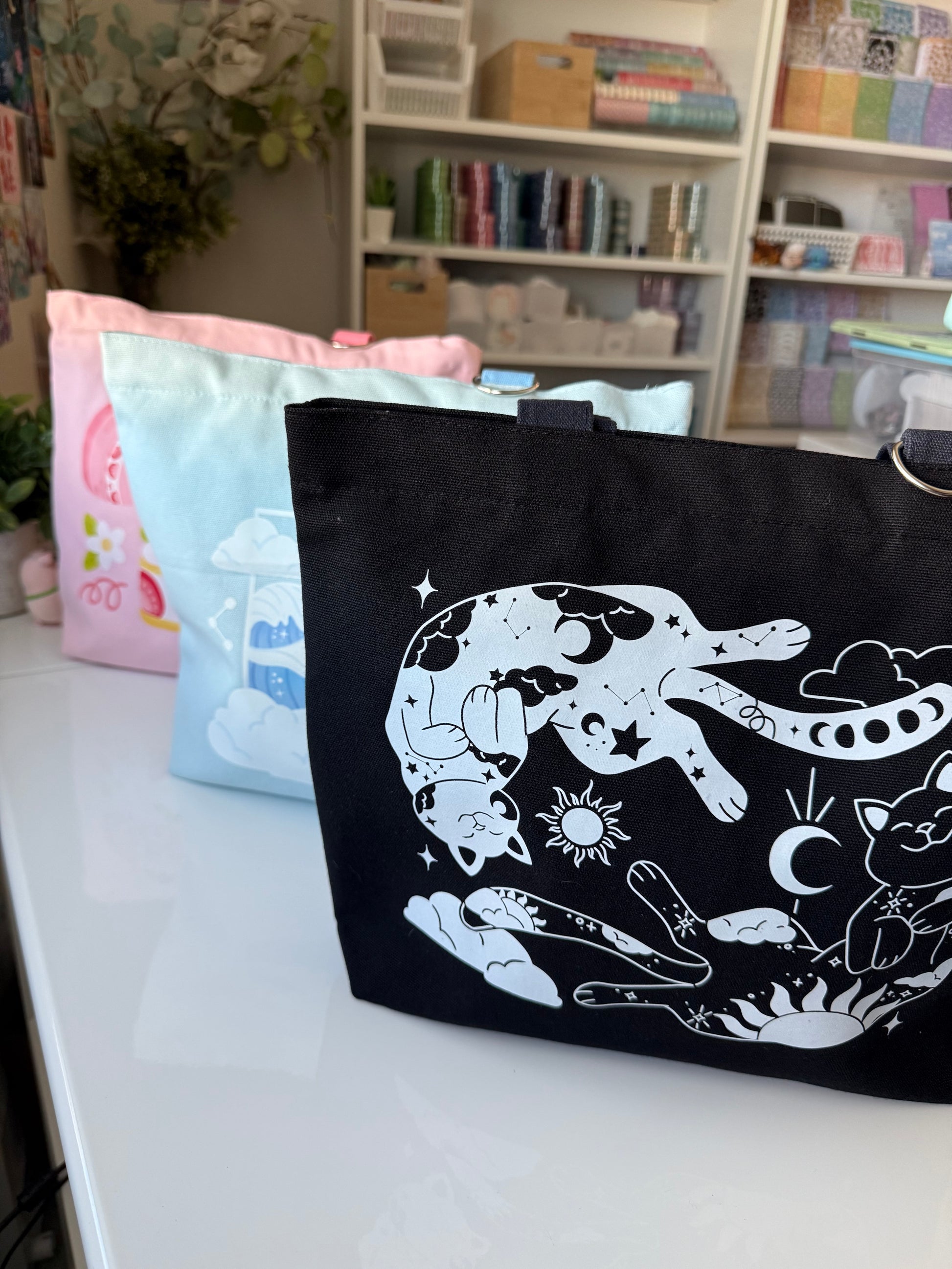 As of Nov 21, due to constant tariff changes and customs issues, these tote bags are ONLY AVAILABLE WITHIN CANADA. They are NOT available for US or INTL purchase for the time being. I am incredibly sorry for the inconvenience
